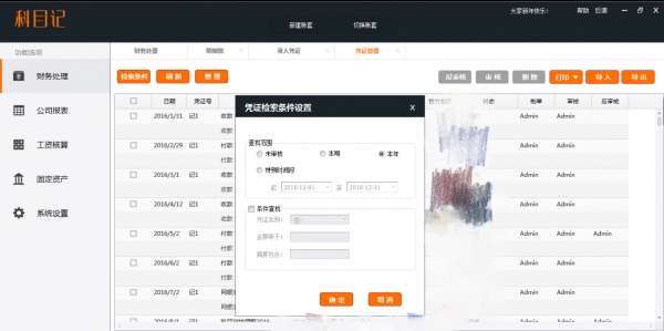 你好,在财务处理---凭证管理----点进去默认为当月录入的凭证,然后在左上角有一个“检索条件”,在查找范围下可以进行筛选。
