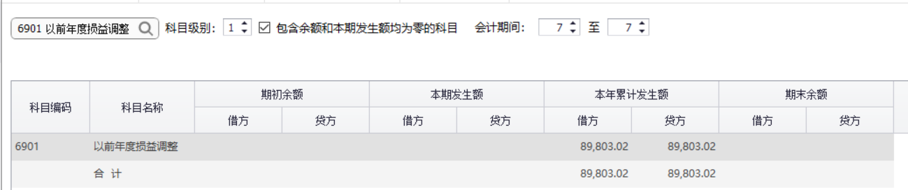 6901以前年度损益调整明明没有余额,一直提醒我结转?