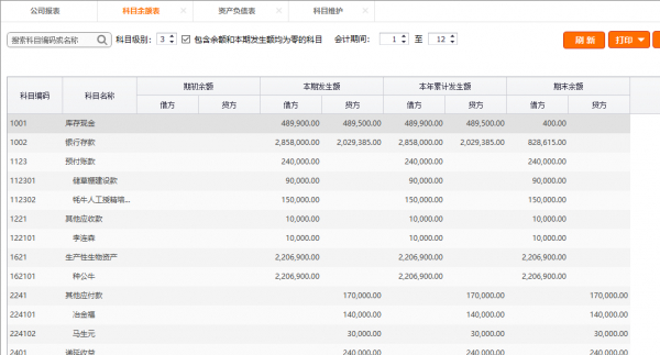 如上图所示,科目余额表中生产性生物资产是有余额的 资产负债表中没有期末数。