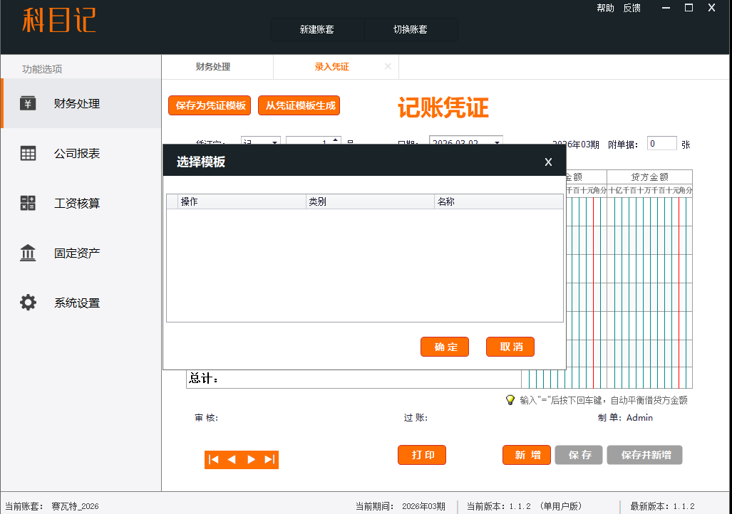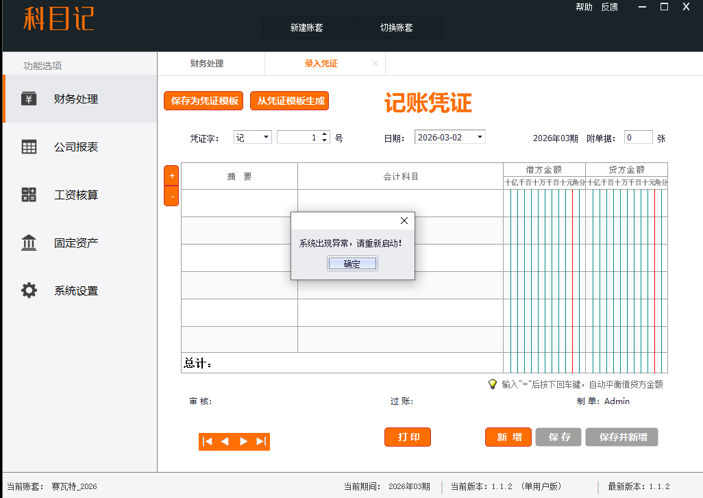 我的使用1.0版本,录入凭证中从凭证模板生成时,系统出现异常,无法生成模板