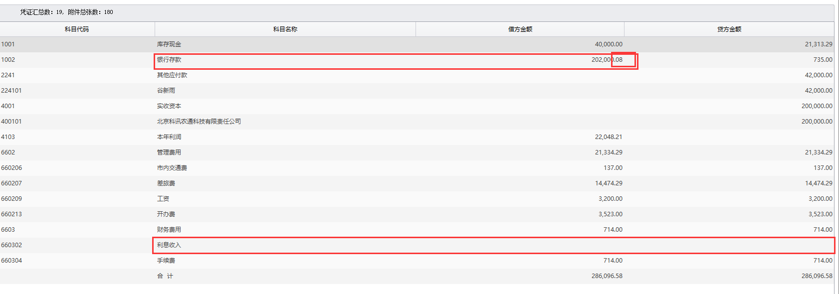 我按二级科目汇总,8分的利息收入凭证汇总时已经在银行存款里显示了 但没有在财务费用-利息收入那里显示,这是什么原因?