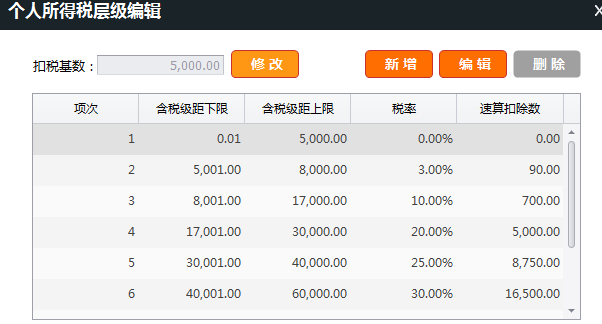 确认个税税率设置