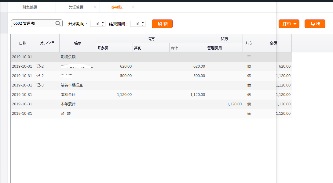 使用系统的期末结转损益功能,多栏账的错误?