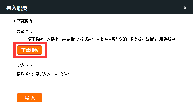 你好,客户端里导入职员信息表里有个统一模板的样式可以下载喔