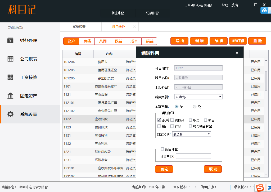2、在科目维护里,打开编辑科目,有的辅助核算是阴影,没法点击,有的就可以,为什么?