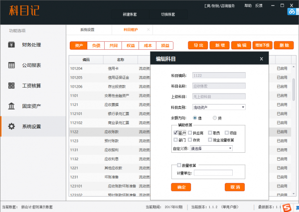 并且辅助核算是可以勾选和取消的,为阴影还有一个原因是该科目已经使用,已经使用过、生成过凭证的科目是不允许修改的