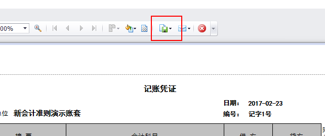 你好,点击打印跳转至打印预览,点击下方的按钮可以导出凭证,下拉箭头可以选择导出文件格式