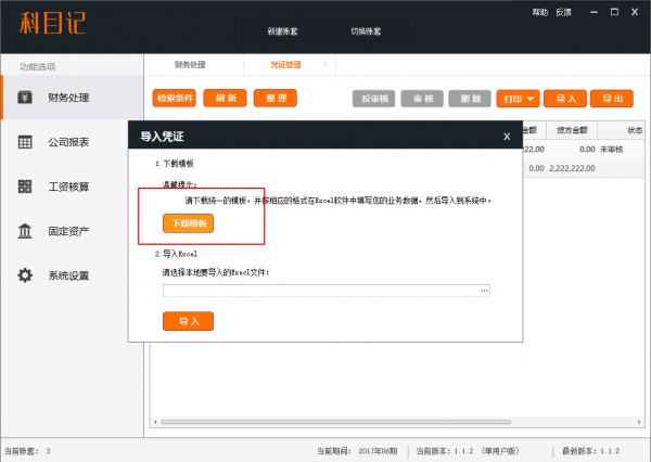 按照科目记模板进行导入