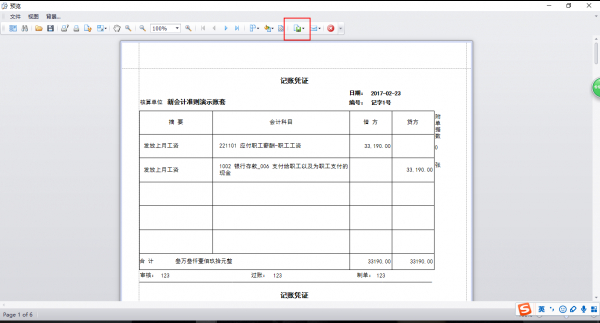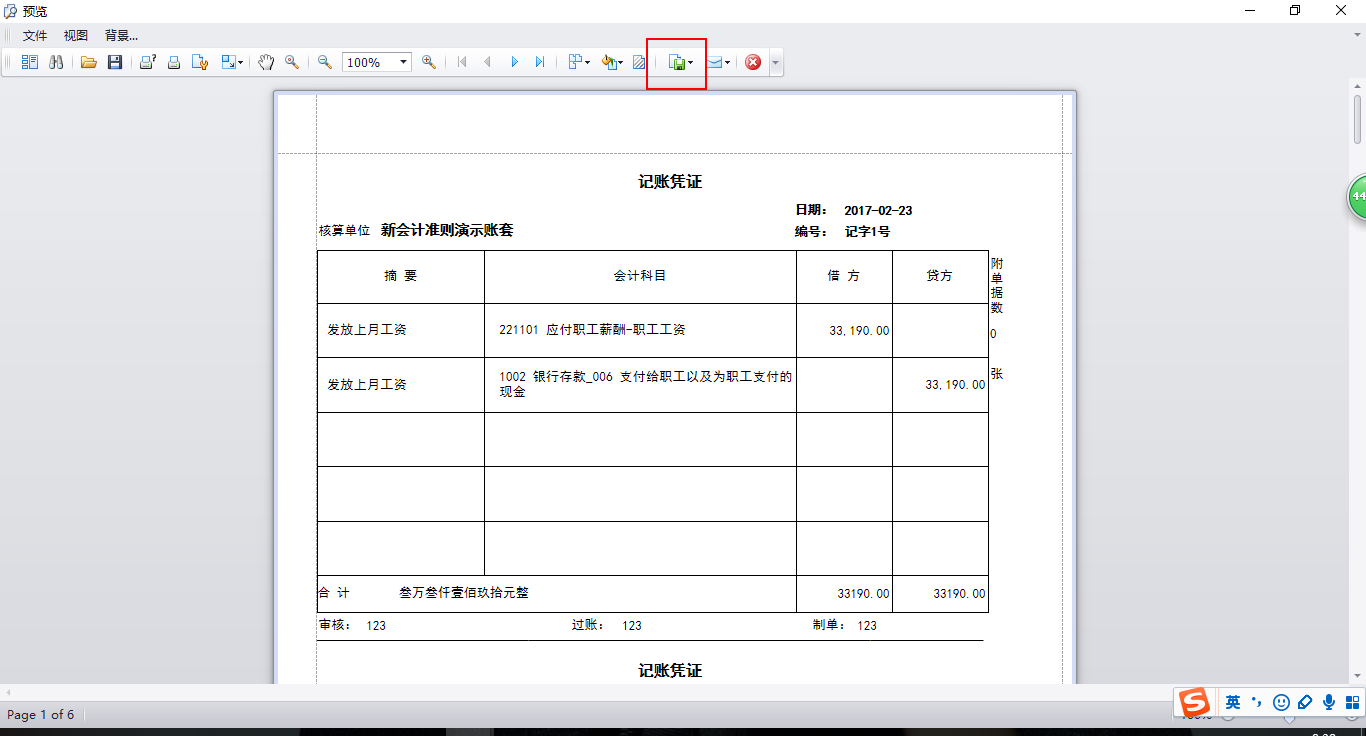 你好,科目记只可以导出修改凭证大小,勾选凭证后点击打印按钮跳转下图预览界面点击红框的按钮即可导出