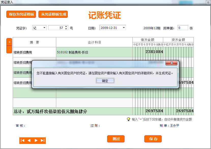 凭证导出修改完,无法导入回科目记呀,跳出窗口提示:“您不能直接输入有关固定资产的凭证,请在固定资产模块输入有关固定资产的详细资料,并生成凭证。”